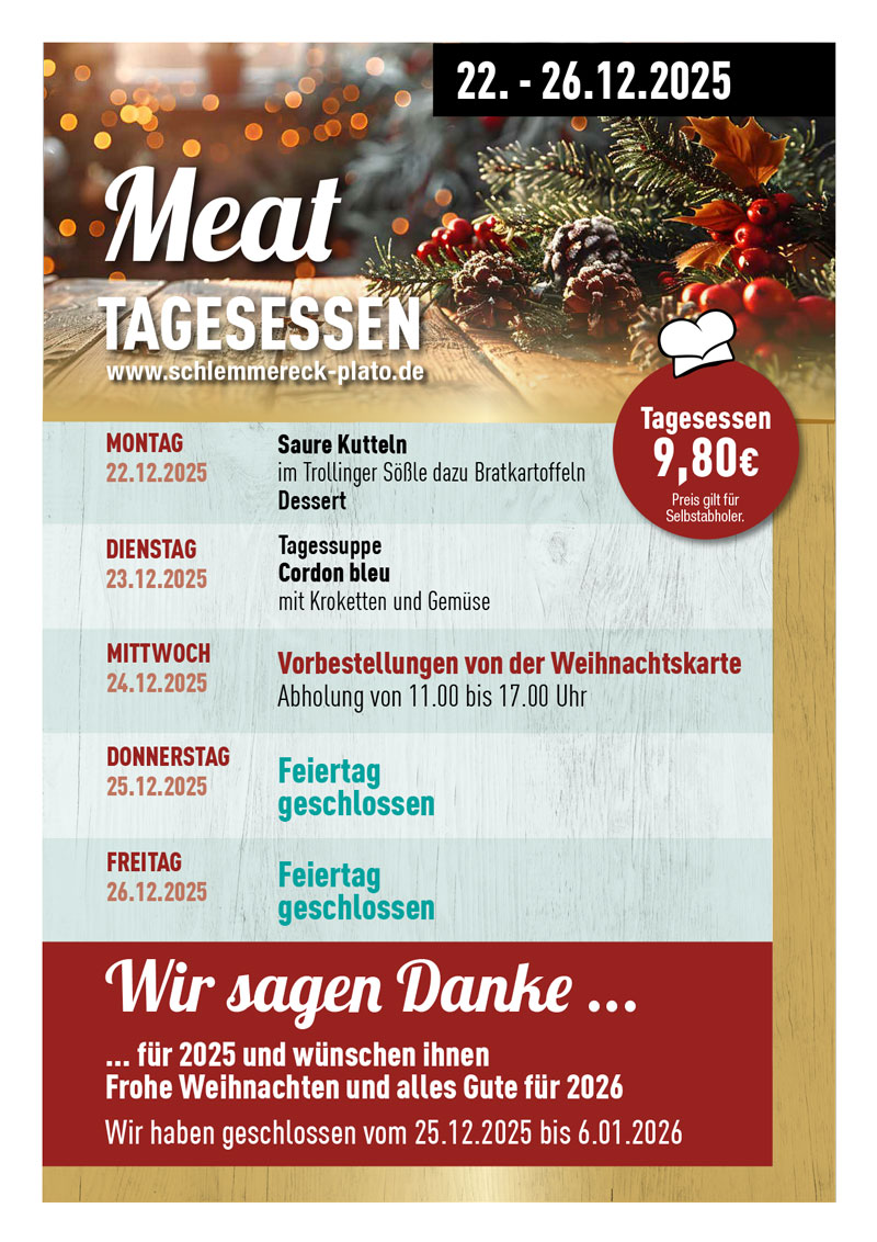 sind schon atemlos. Deshalb können wir leider nicht mehr anders: Unsere wechselnden Tagesgerichte
