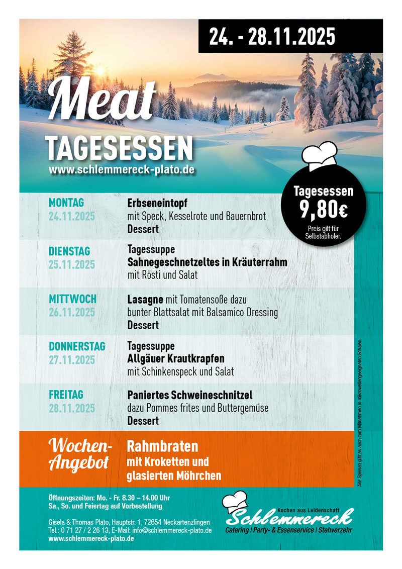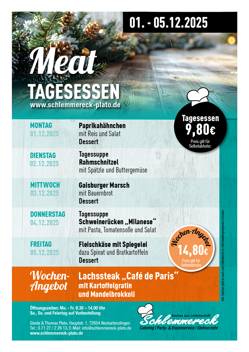 | Paniertes Schweineschnitzel | 100 g | 3,20 € |